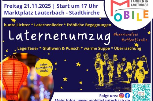 Liebe Familien, der Herbst ist da und das bedeutet: Es ist wieder Zeit für unseren stimmungsvollen Laternenumzug! Wir freuen uns, alle Familien zu diesem fröhlichen Event einzuladen. Lasst uns gemeinsam Lieder singen und die Dunkelheit mit unseren Laternen erhellen. Wann und wo? Was erwartet Euch? Lasst Eure Laternen leuchten, schnappt Euch Eure Freunde oder nutzt diese Gelegenheit, um andere Familien kennenzulernen! Wir werden gemeinsam durch die Straßen der Lauterbacher Altstadt ziehen und bei musikalischer Begleitung stimmungsvolle Laternenlieder singen. Beenden werden wir den Abend mit einem gemütlichen Lagerfeuer im Hohhausgarten. Hier wird es wieder warme Suppen von der Wachtel sowie leckeren Glühwein und Kinderpunsch geben. Alle Laternenkinder dürfen sich außerdem auf…