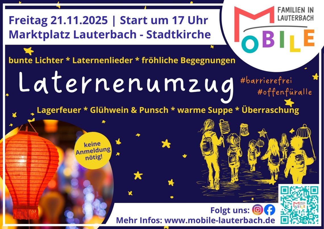 Liebe Familien, der Herbst ist da und das bedeutet: Es ist wieder Zeit für unseren stimmungsvollen Laternenumzug! Wir freuen uns, alle Familien zu diesem fröhlichen Event einzuladen. Lasst uns gemeinsam Lieder singen und die Dunkelheit mit unseren Laternen erhellen. Wann und wo? Was erwartet Euch? Lasst Eure Laternen leuchten, schnappt Euch Eure Freunde oder nutzt diese Gelegenheit, um andere Familien kennenzulernen! Wir werden gemeinsam durch die Straßen der Lauterbacher Altstadt ziehen und bei musikalischer Begleitung stimmungsvolle Laternenlieder singen. Beenden werden wir den Abend mit einem gemütlichen Lagerfeuer im Hohhausgarten. Hier wird es wieder warme Suppen von der Wachtel sowie leckeren Glühwein und Kinderpunsch geben. Alle Laternenkinder dürfen sich außerdem auf…