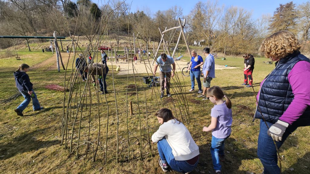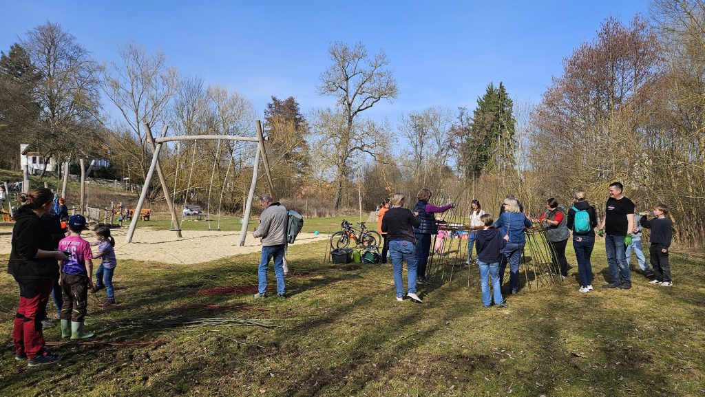 Bei strahlendem Sonnenschein haben sich letztes Wochenende viele Eltern und Kinder am Spielplatz an der Lauter getroffen, um gemeinsam ein Weidentipi zu pflanzen. Unter der Anleitung von Petra Schwab wurde gesteckt, geflochten, gelacht und nebenbei gab es jede Menge spannende Infos rund um die Weide.