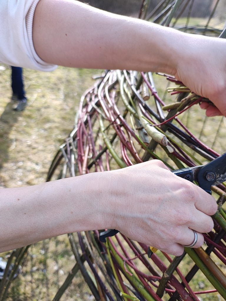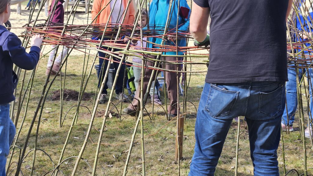 So erfuhren wir zum Beispiel, dass man aus der Rinde der Weide einen Tee kochen kann, der als natürliches Schmerzmittel wirkt. Auch praktische Tipps zum Tipi-Bau gab es: Wie richtet man die Ruten aus, damit das Tipi stabil bleibt? Welche Abstände sind wichtig? Und warum ist die Weide eigentlich so eine robuste und dankbare Pflanze?