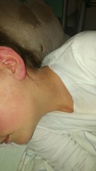 - Rötungen an den Handinnenflächen und /oder den Fußsohlen (nach 14 Tagen evtl. Ablösung der Haut an Finger und Zehenspitzen