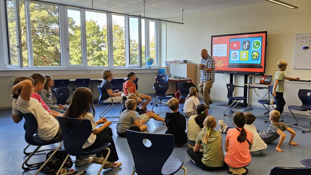 Beim Kinder-Workshop drehte sich alles um Fragen wie: Wie viel Mediennutzung ist „gesund“? Kann man Anfragen über das Internet vertrauen? Was steckt eigentlich hinter den großen Social-Media-Plattformen? Gemeinsam mit dem erfahrenen Referenten des Vereins Blickwechsel e.V. gingen die Kinder diesen Themen spielerisch und kritisch auf den Grund.